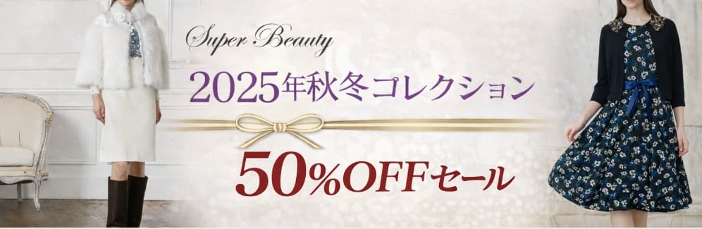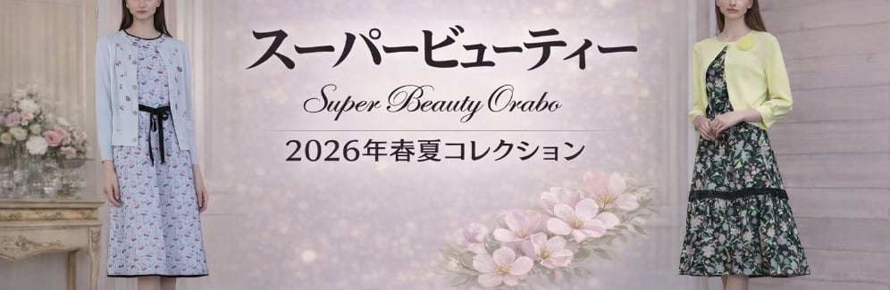 スーパービューティー ワンピース モノトーン 花柄 ウエスト切替 ビジュー&リボン付き ポンチ素材 上品エレガント 2616009 ブラック 2026年春夏 オーラボー Super Beauty 上品 30代 40代 50代 60代