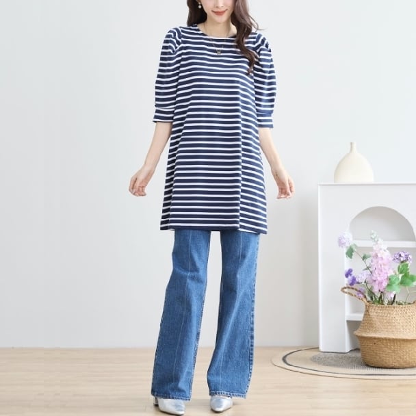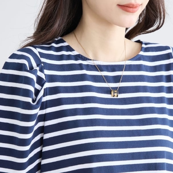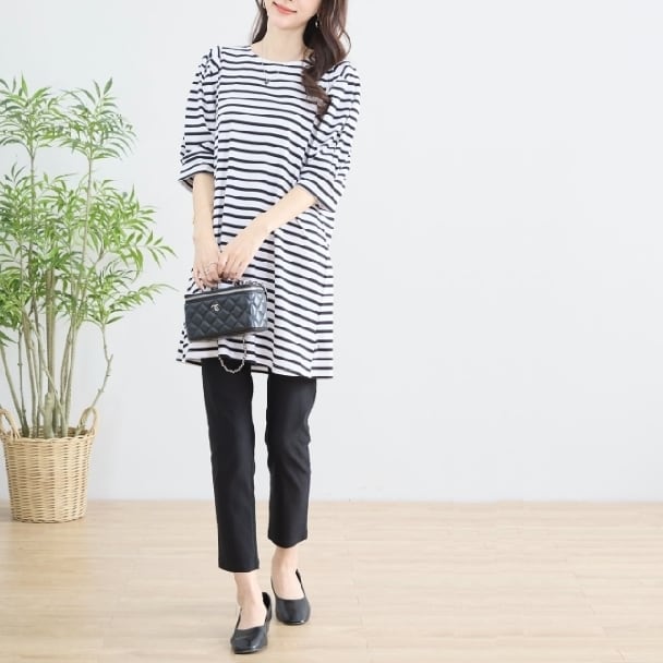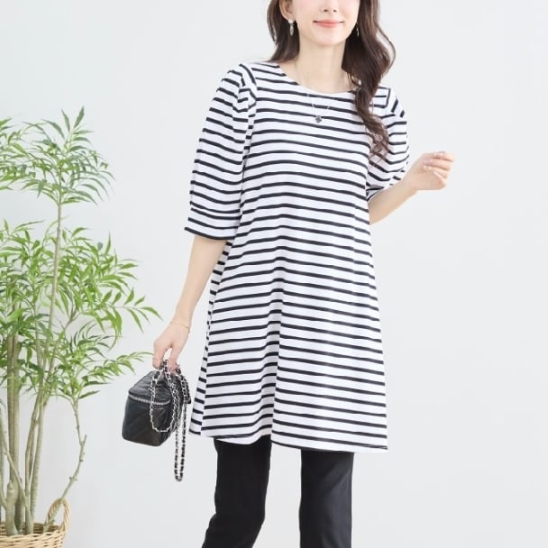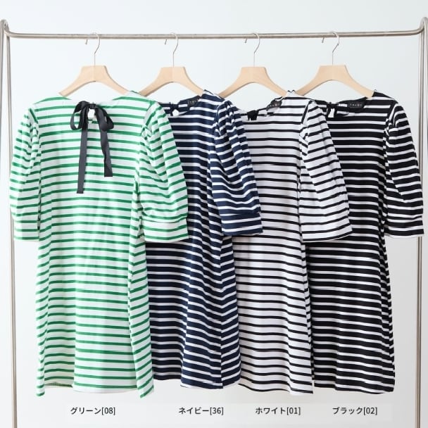 チュニック バックリボン付き ボーダー カットソー ロングTシャツ N83-073 TRUBE M~L大人可愛い ミセス fmsd キレイメ 普段着 おしゃれ着 デイリーファッション 大人スタイル 婦人服 可愛い服 30代 40代 50代 60代 洋服 レディース アパレル 女性