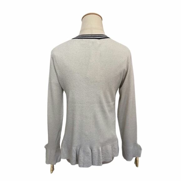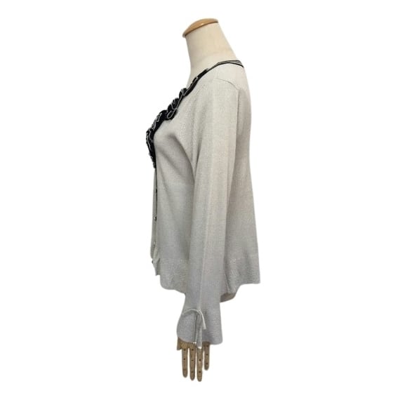 上品なストライプ前立てのカーディガンと