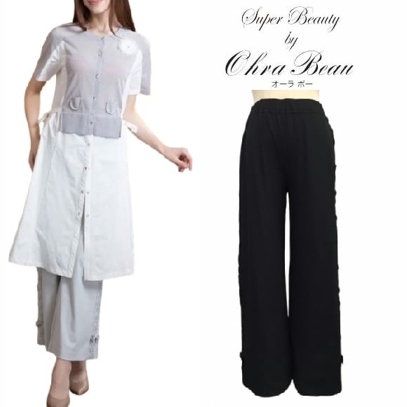 スーパービューティー ワイドパンツパンツ サイドレーステープ使い 2514006 ブラック 2025年春夏 オーラボー 大人かわいい服 大人スタイル キレイメ Super Beauty レディース アパレル 女性 M L LL 30代 40代 50代 60代