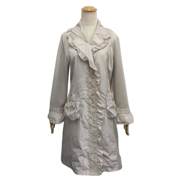 タフタ素材を掛け合わせたフリル襟ジャケットです。