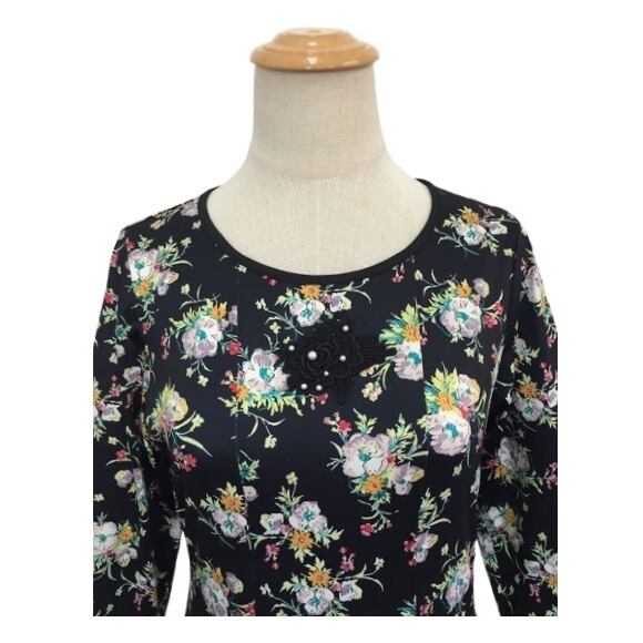 スーパービューティー チュニック カットソー 裾フレア 花柄 2422002 ブラック 2024年秋冬 大人かわいい服 ミセス レディース キレイメ アパレル 女性 30代 40代 50代 60代