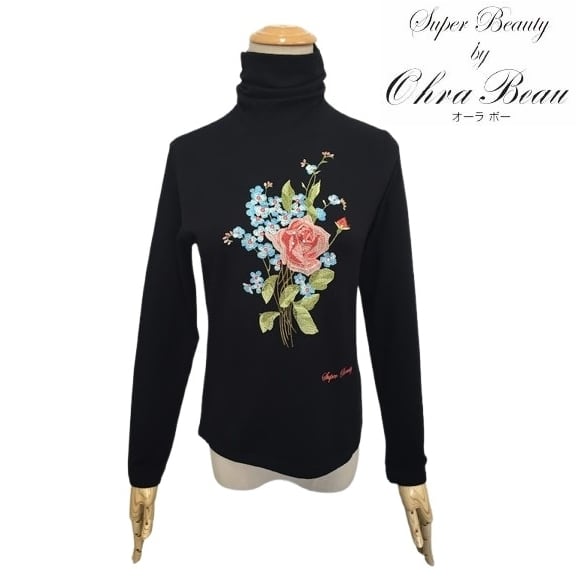 スーパービューティー セーター 胸元 フラワー刺しゅう タートルネック 2421041 ブラック 2024/2025年秋冬 オーラボー 大人かわいい服 大人スタイル キレイメ Super Beauty レディース アパレル 女性 M L LL 30代 40代 50代 60代