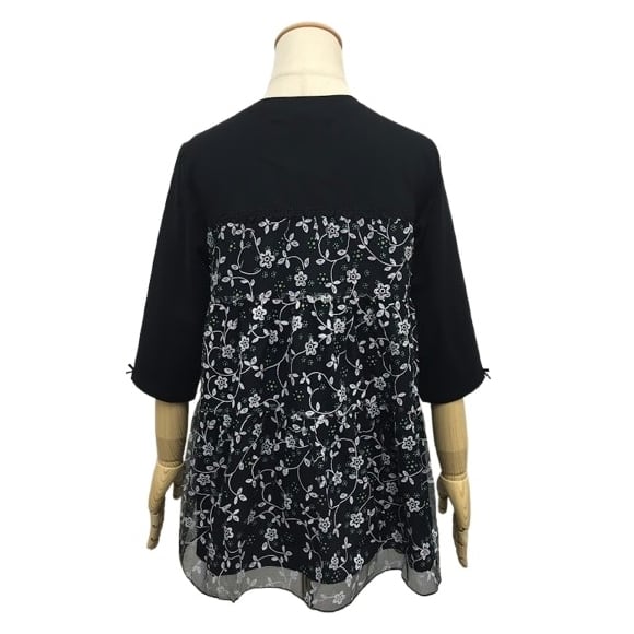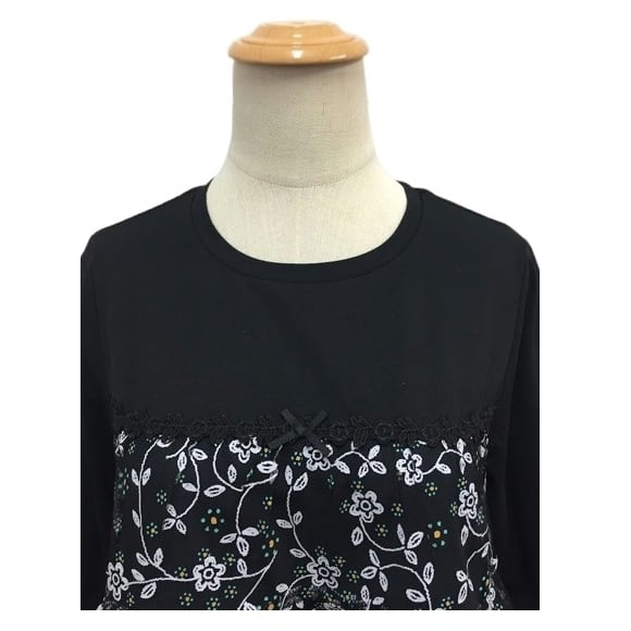 スーパービューティー チュニック 胸元チュール 切替 七分袖 2422011 ブラック Sサイズあり 2024/2025年秋冬 オーラボー 大人かわいい服 大人スタイル キレイメ Super Beauty レディース アパレル 女性 M L LL 30代 40代 50代 60代