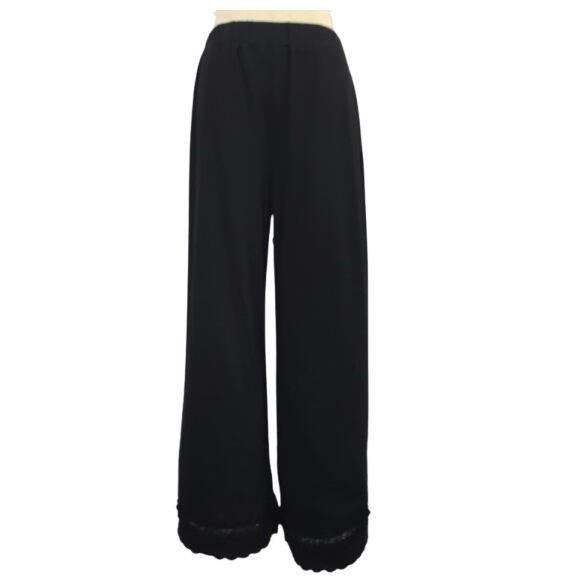 スーパービューティー ワイドパンツ スカラップ レースデザイン 2514007 ブラック 2025年春夏 オーラボー 大人かわいい服 大人スタイル キレイメ Super Beauty レディース アパレル 女性 M L LL 30代 40代 50代 60代