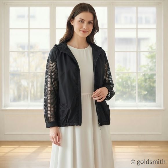 スーパービューティー パーカー タフタ 袖レース 2427027 ブラック 2024/2025年秋冬 オーラボー 大人かわいい服 大人スタイル キレイメ Super Beauty レディース アパレル 女性 M L LL 30代 40代 50代 60代