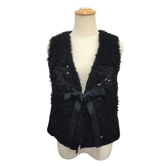 スーパービューティー ジレ 胸元スパンコール モコモコ ボア素材 ニットベスト 2421024 ブラック 2024/2025年秋冬 オーラボー 大人かわいい服 大人スタイル キレイメ Super Beauty レディース アパレル 女性 M L LL 30代 40代 50代 60代