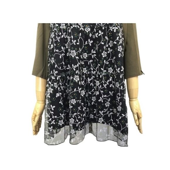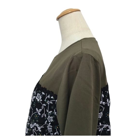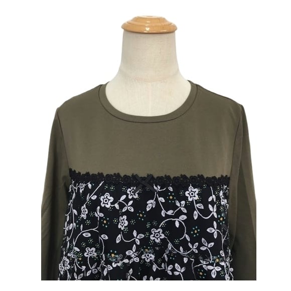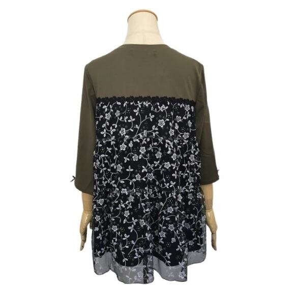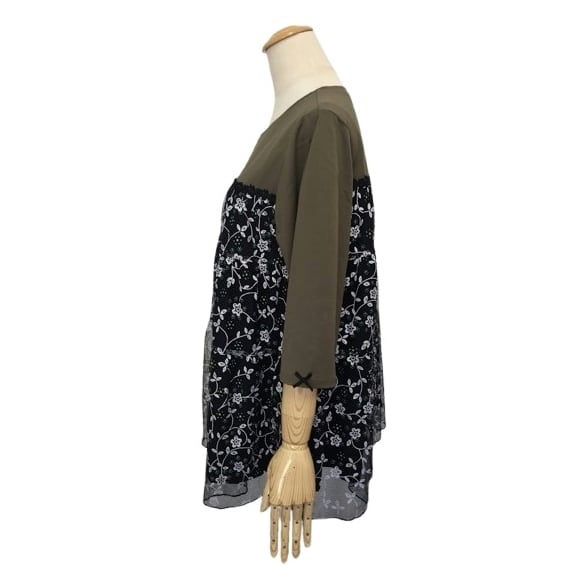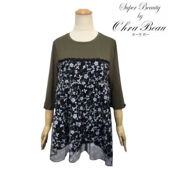 スーパービューティー チュニック 胸元チュール 切替 七分袖 2422011 カーキ Sサイズあり 2024/2025年秋冬 オーラボー 大人かわいい服 大人スタイル キレイメ Super Beauty レディース アパレル 女性 M L LL 30代 40代 50代 60代