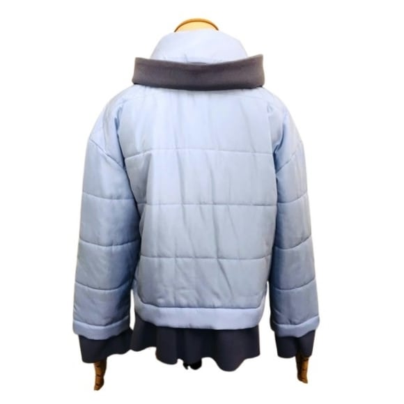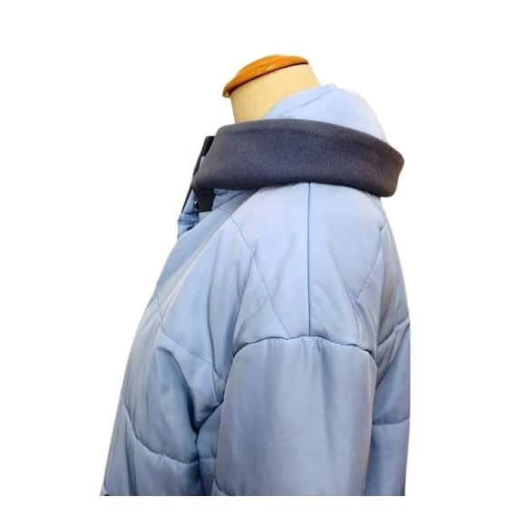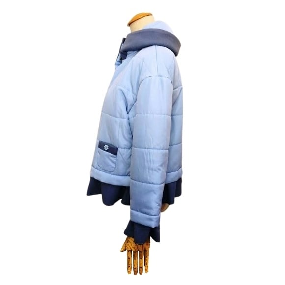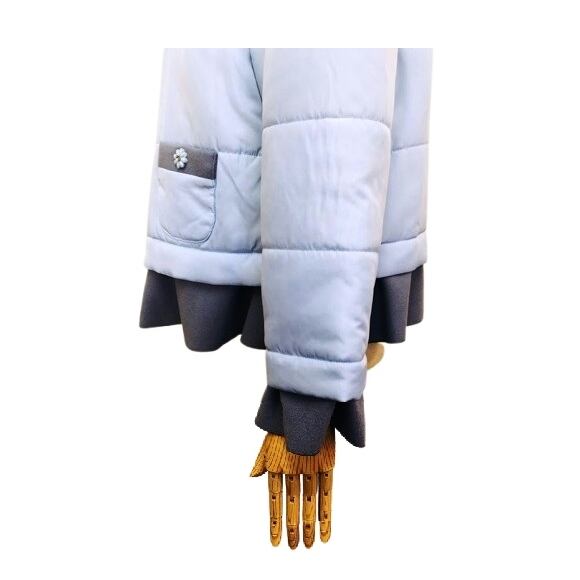 光沢のある生地の中綿ジャケットです。