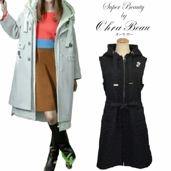 スーパービューティー スーパービューティー ロングベスト キルティング フードデザイン 2428004 ブラック 2024/2025年秋冬 オーラボー 大人かわいい服 大人スタイル キレイメ Super Beauty レディース アパレル 女性 M L LL 30代 40代 50代 60代