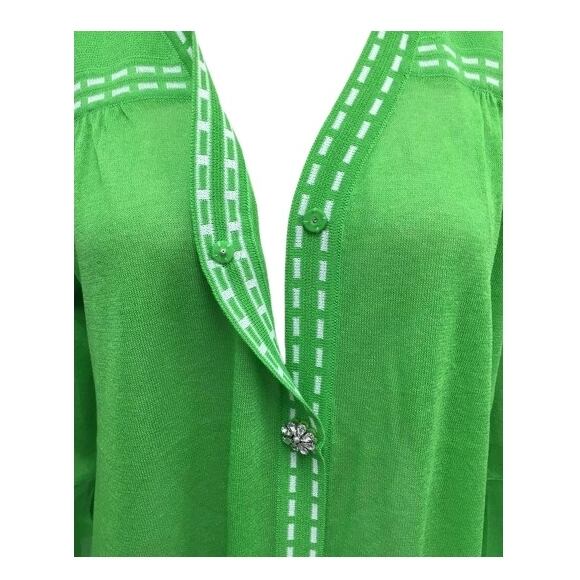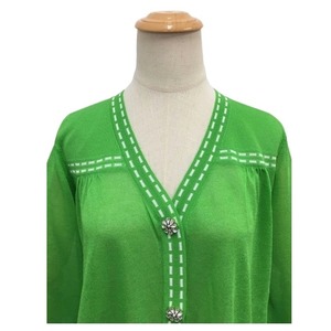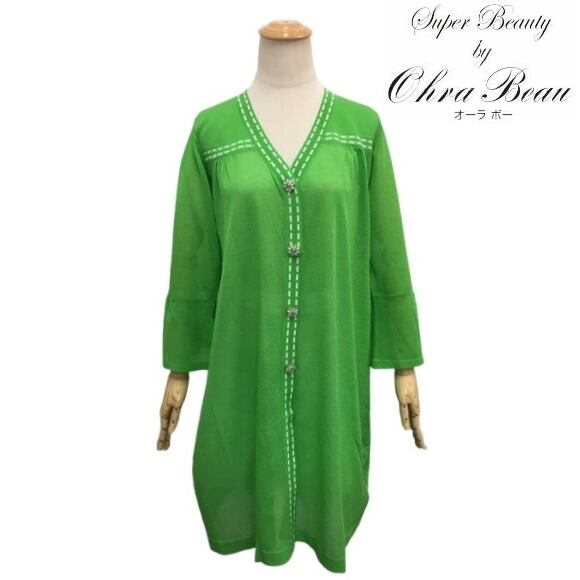 スーパービューティー カーディガン ステッチ 配色 Vネック 2411034 グリーン 2024年春夏 オーラボー 大人かわいい服 大人スタイル キレイメ Super Beauty レディース アパレル 女性 M L LL 30代 40代 50代 60代