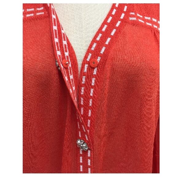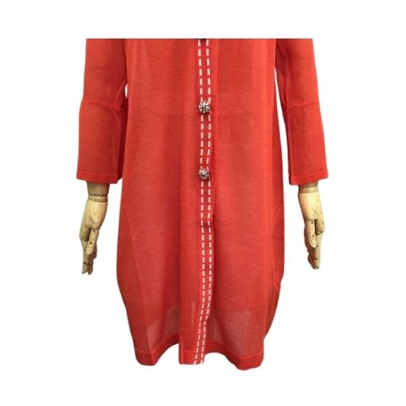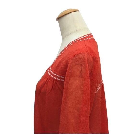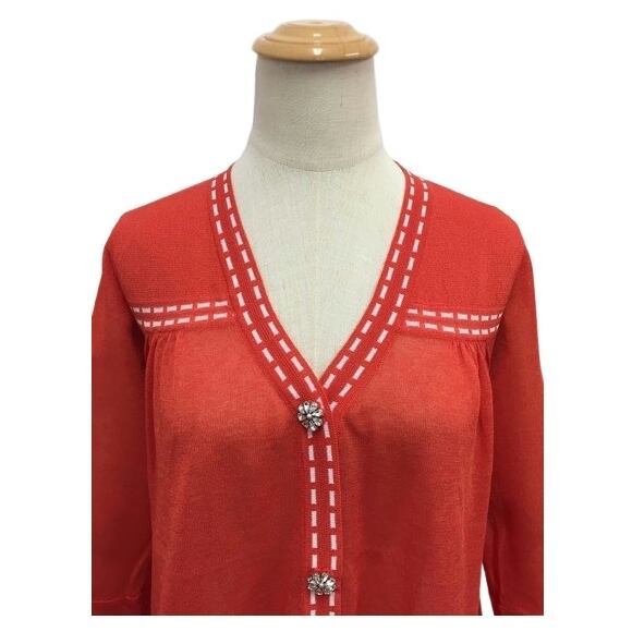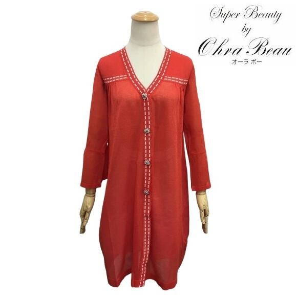 スーパービューティー カーディガン ステッチ 配色 Vネック 2411034 オレンジ 2024年春夏 オーラボー 大人かわいい服 大人スタイル キレイメ Super Beauty レディース アパレル 女性 M L LL 30代 40代 50代 60代