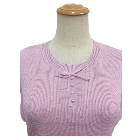 スーパービューティー ニット ラメ入り フレンチスリーブ 2411025 ピンク 2024年春夏 オーラボー Super Beauty 大人かわいい服 大人スタイル キレイメ レディース アパレル 女性 M L LL 30代 40代 50代 60代