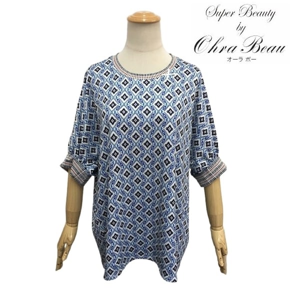 スーパービューティー チュニック カットソー 幾何学模様 2412013 ブルー 2024年春夏 オーラボー Super Beauty 大人かわいい服 大人スタイル キレイメ レディース アパレル 女性 M L LL 30代 40代 50代 60代