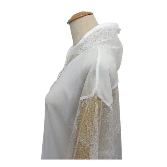 スーパービューティー パーカー パワーネット レース 切替 2417007 ホワイト 2024年春夏 オーラボー 大人かわいい服 ミセス キレイメ レディース アパレル 女性 M L LL 30代 40代 50代 60代