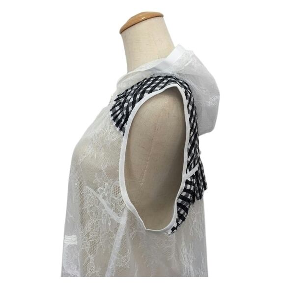 スーパービューティー ベスト ギンガムチェック レース使いジレ 2417008 ホワイト 2024年春夏 オーラボー 大人かわいい服 ミセス キレイメ レディース アパレル 女性 M L LL 30代 40代 50代 60代