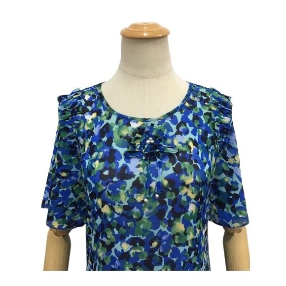 スーパービューティー チュニック カットソー 花柄 パワーネット 2512021 ブルー 2025年春夏 オーラボー 大人かわいい服 大人スタイル キレイメ Super Beauty レディース アパレル 女性 M L LL 30代 40代 50代 60代