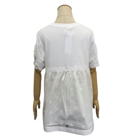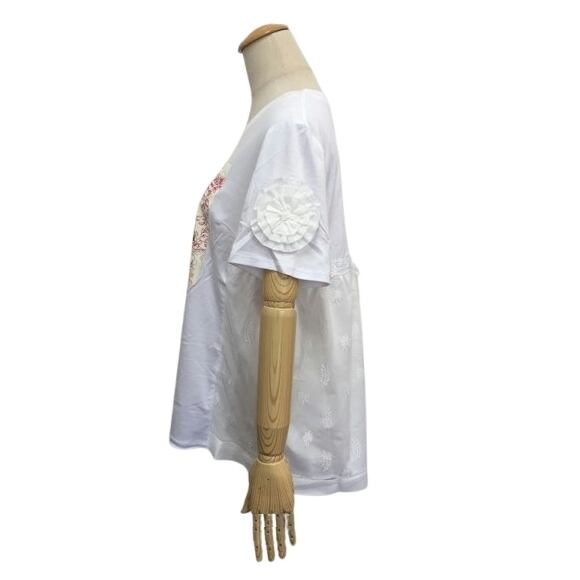 スーパービューティー カットソー 胸元バラ柄 ロングTシャツ 2512012 ホワイト 2025年春夏 オーラボー 大人かわいい服 大人スタイル キレイメ Super Beauty レディース アパレル 女性 M L LL 30代 40代 50代 60代