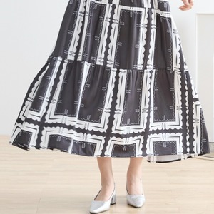 ロングワンピース ティアード モノトーン幾何学柄 N83-142 フリー TRUBE M L 大人可愛い ミセス fmsd キレイメ 普段着 おしゃれ着 デイリーファッション 大人スタイル 婦人服 可愛い服 30代 40代 50代 60代 洋服 レディース