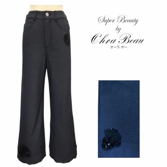 スーパービューティー デニムワイドパンツ ビジュー使い 2424007 ブラック 2024/2025年秋冬 オーラボー Super Beauty 大人かわいい服 大人スタイル キレイメ レディース アパレル 女性 M L LL 30代 40代 50代 60代