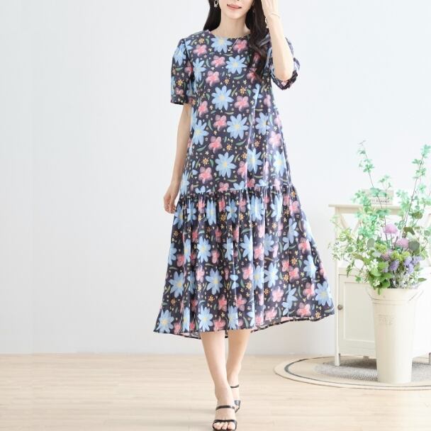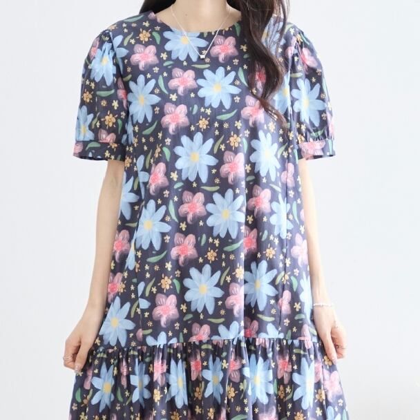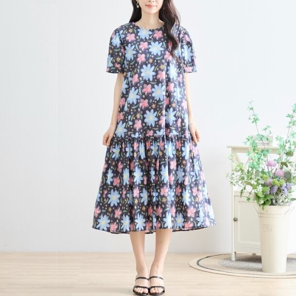 ティアードワンピース フラワーコットン N82-256 フリー TRUBE M L 大人可愛い ミセス fmsd キレイメ 普段着 おしゃれ着 デイリーファッション 大人スタイル 婦人服 可愛い服 30代 40代 50代 60代 洋服 レディース