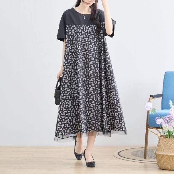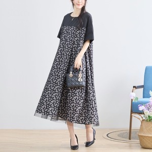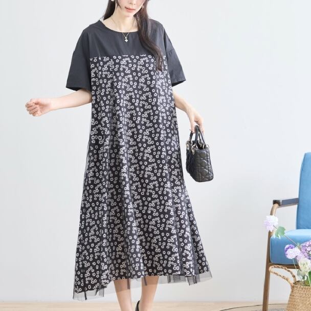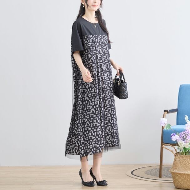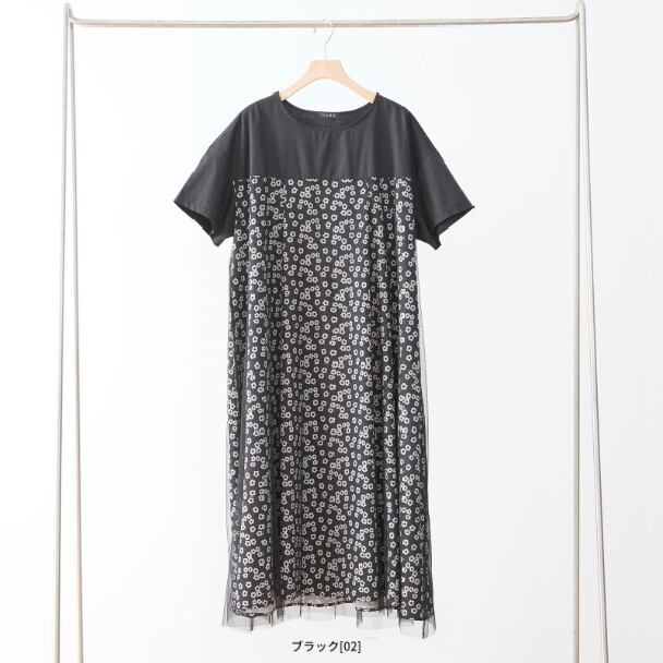 ロングワンピース 小花柄 チュール レイヤードフレア N83-114 フリー TRUBE M L 大人可愛い ミセス fmsd キレイメ 普段着 おしゃれ着 デイリーファッション 大人スタイル 婦人服 可愛い服 30代 40代 50代 60代 洋服 レディース