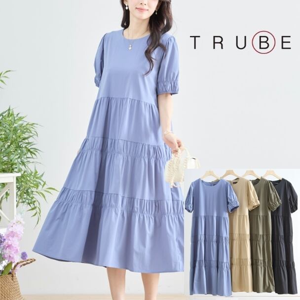 ティアードワンピース パフスリーブ N82-313 フリー TRUBE M L 大人可愛い ミセス fmsd キレイメ 普段着 おしゃれ着 デイリーファッション 大人スタイル 婦人服 可愛い服 30代 40代 50代 60代 洋服 レディース