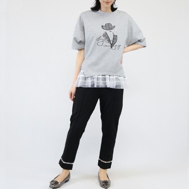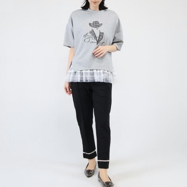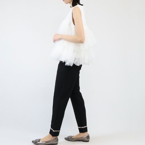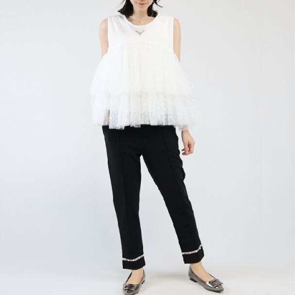パンツ 裾 シアーパール付き センターライン テーパード ストレッチ VERITE M L ブラック 870 フリー 大人可愛い ミセス fmsd cmg キレイメ 普段着 おしゃれ着 デイリーファッション 大人スタイル 婦人服 可愛い服 30代 40代 50代 60代 洋服 レディース
