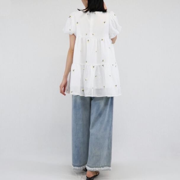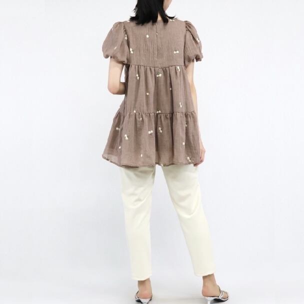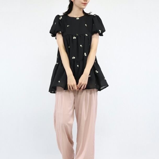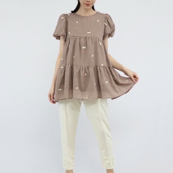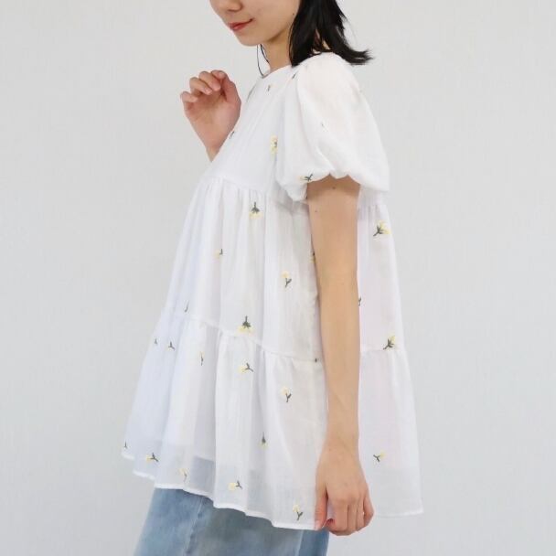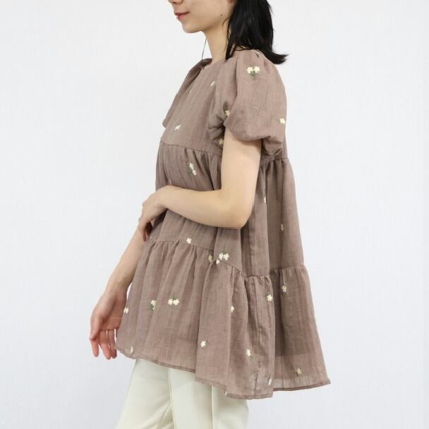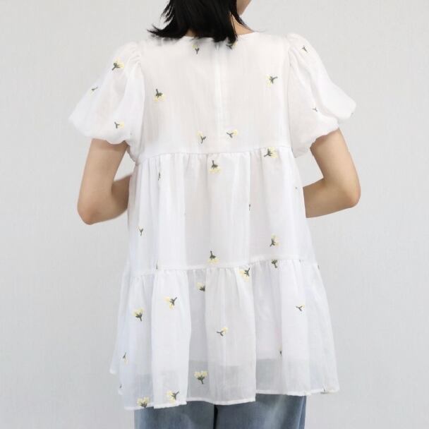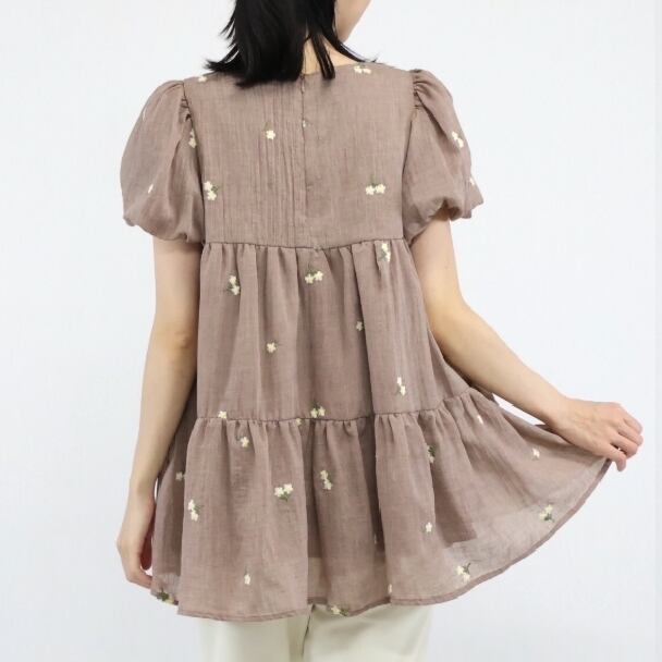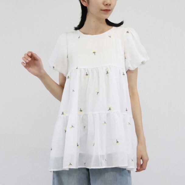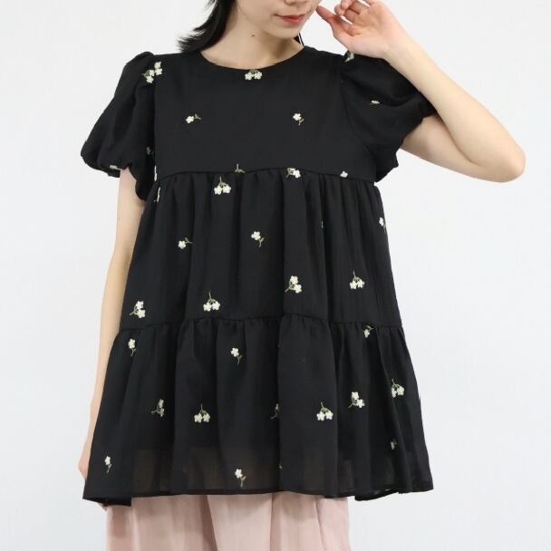 ティアード チュニック プルオーバーフラワー刺繡 1766 VERITE M L ブラック モカ ホワイト フリー 大人可愛い ミセス fmsd cmg キレイメ 普段着 おしゃれ着 デイリーファッション 大人スタイル 婦人服 可愛い服 30代 40代 50代 60代 洋服 レディース