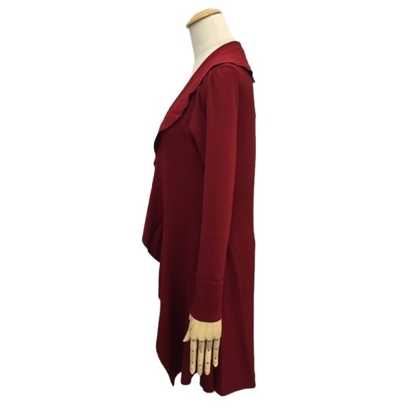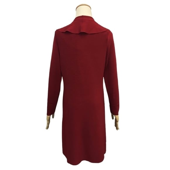 スーパービューティー カーディガン ラッフル衿 ロング ニットカーデ 2321008 レッド 赤 定番品 オーラボー 大人かわいい服 ミセス レディース キレイメ アパレル 女性 30代 40代 50代 60代 大人スタイル