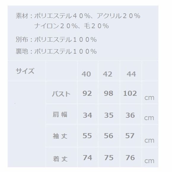 素材:ポリエステル40%、アクリル20%
