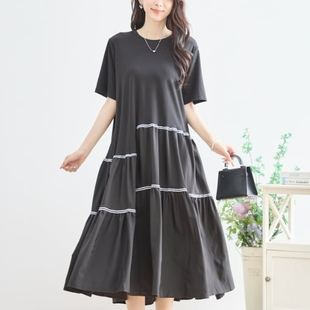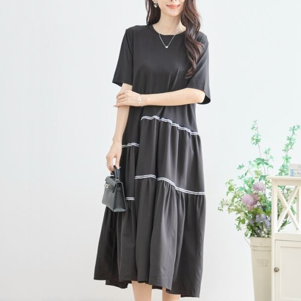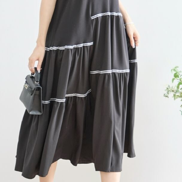 ティアードワンピース ラインアクセント アシンメトリー N82-303 TRUBE M L フリー 大人可愛い ミセス fmsd キレイメ 普段着 おしゃれ着 デイリーファッション 大人スタイル 婦人服 可愛い服 30代 40代 50代 60代 洋服 レディース