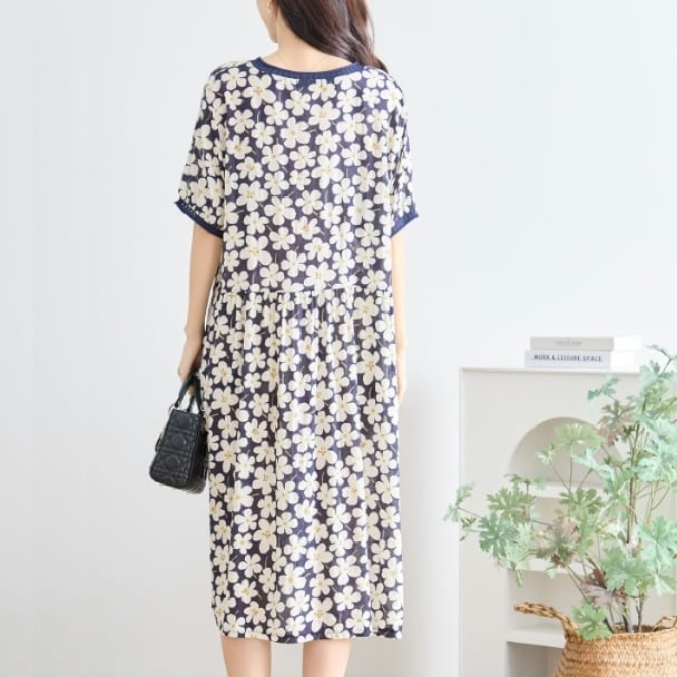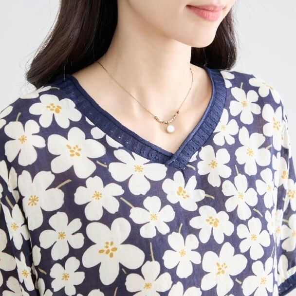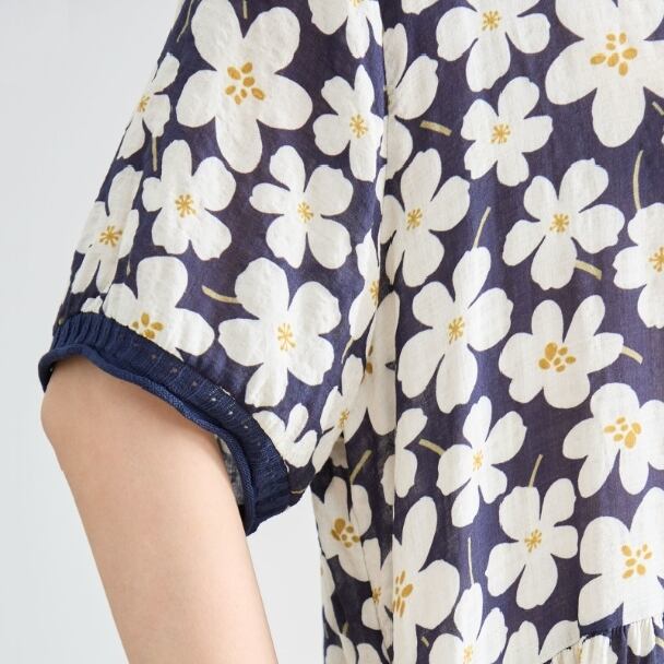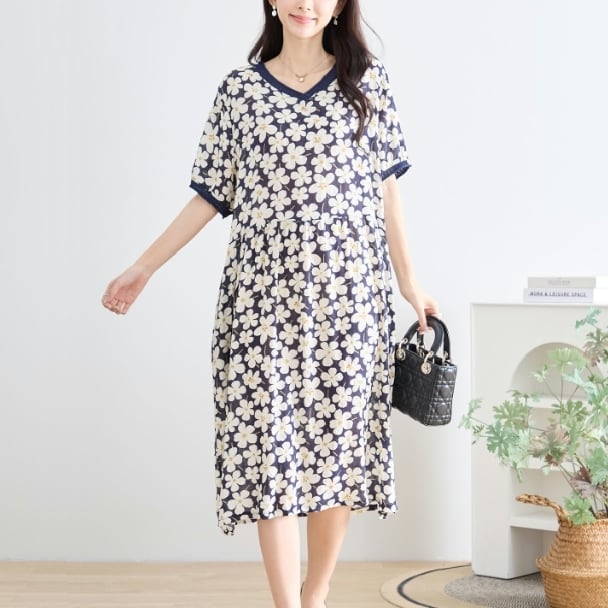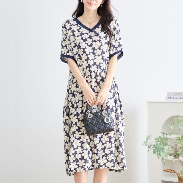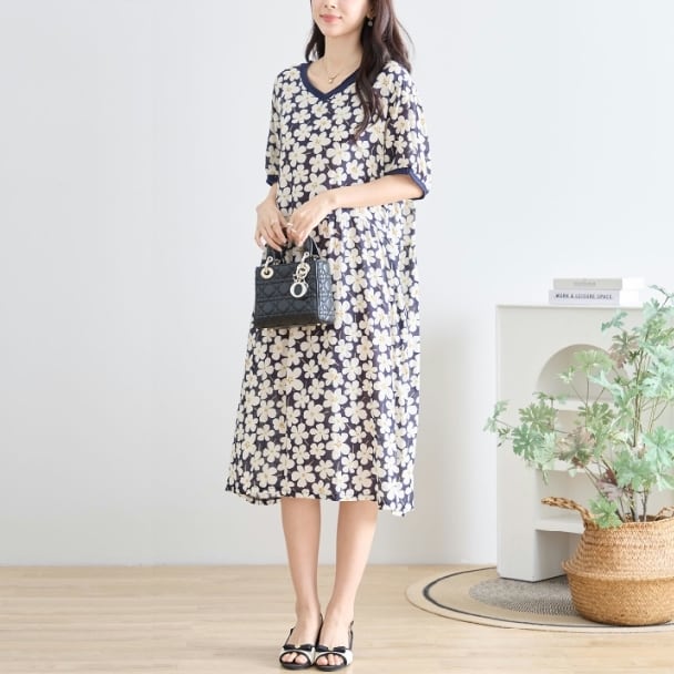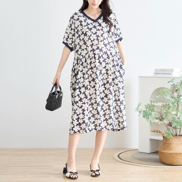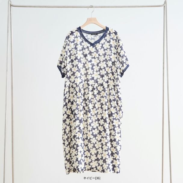 ワンピース Vネック フラワープリント コットン N82-362 TRUBE M L フリー 大人可愛い ミセス fmsd キレイメ 普段着 おしゃれ着 デイリーファッション 大人スタイル 婦人服 可愛い服 30代 40代 50代 60代 洋服 レディース