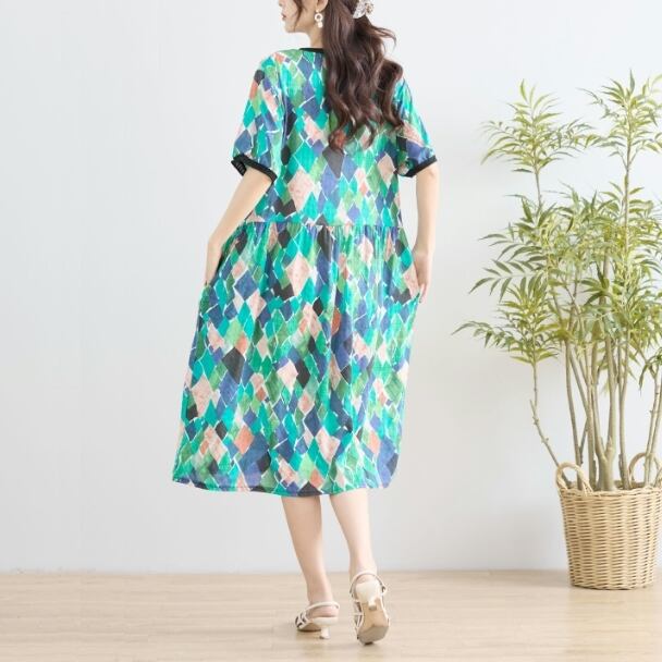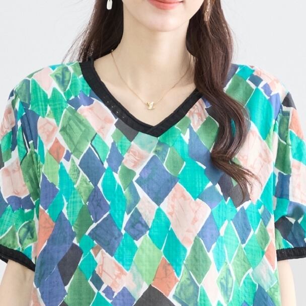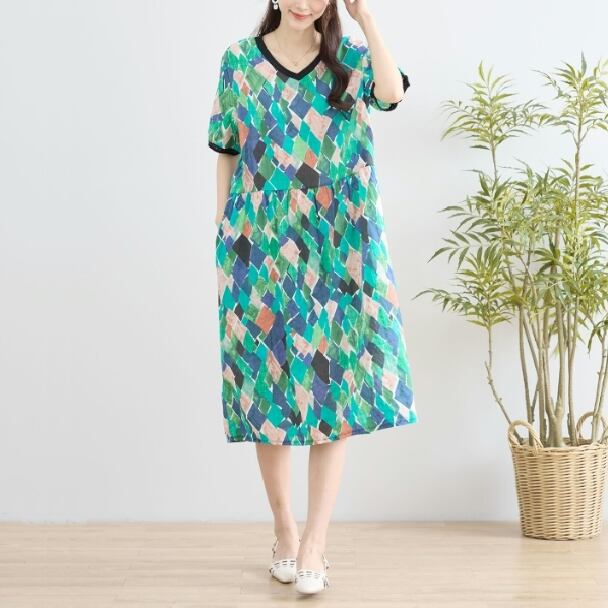 ワンピース Vネック コットン N82-124 TRUBE L LL フリー 大人可愛い ミセス fmsd キレイメ 普段着 おしゃれ着 デイリーファッション 大人スタイル 婦人服 可愛い服 30代 40代 50代 60代 洋服 レディース