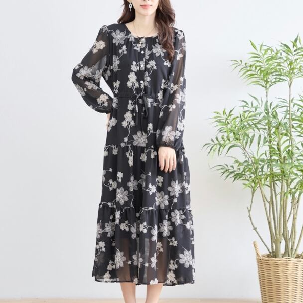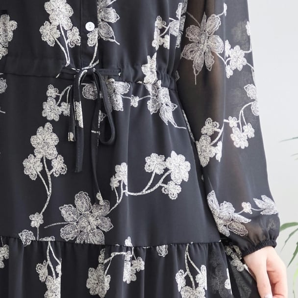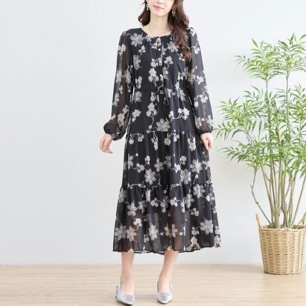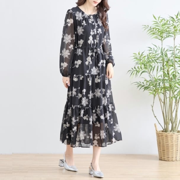 ティアードワンピース エレガントフローラル N82-153 TRUBE L LL フリー 大人可愛い ミセス fmsd キレイメ 普段着 おしゃれ着 デイリーファッション 大人スタイル 婦人服 可愛い服 30代 40代 50代 60代 洋服 レディース