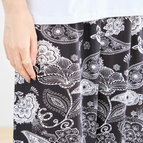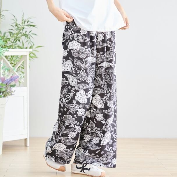 イージーパンツ ペイズリー リラックス ワイドパンツ N53-034 TRUBE M L フリー サラサラ 涼しい 大人可愛い ミセス fmsd キレイメ 普段着 おしゃれ着 デイリーファッション 大人スタイル 婦人服 可愛い服 30代 40代 50代 60代 洋服 レディース