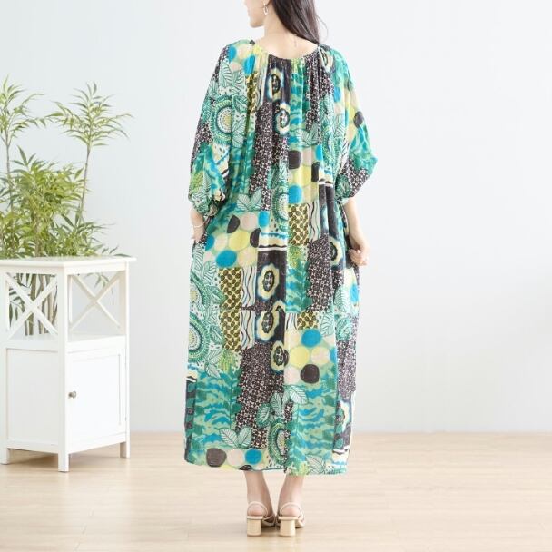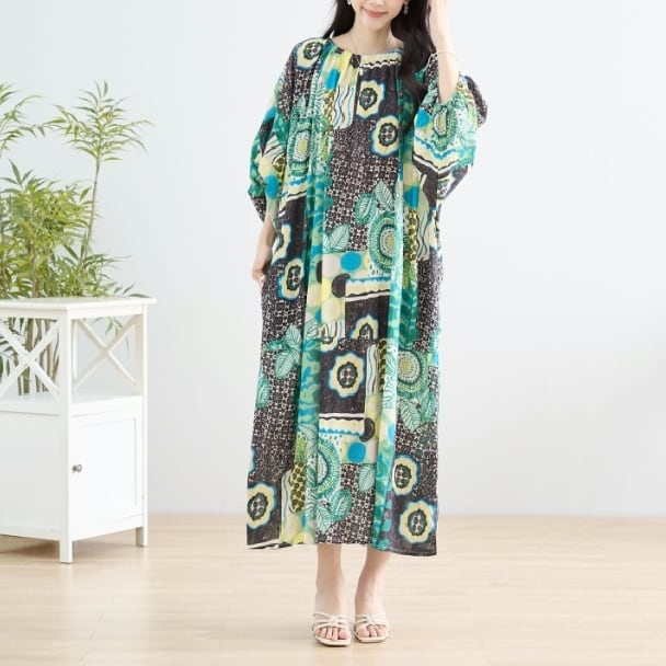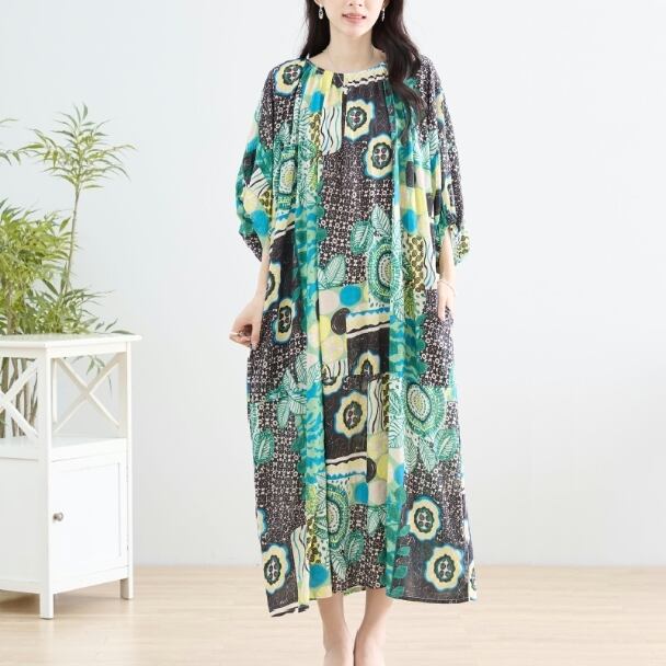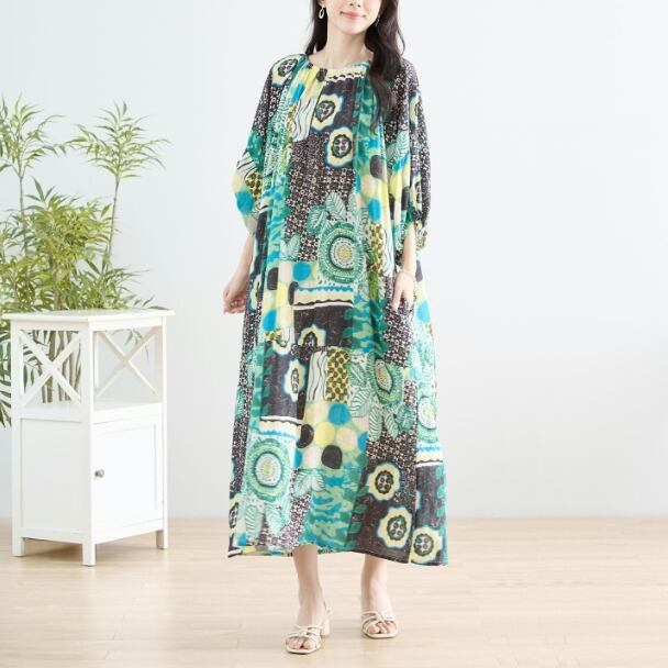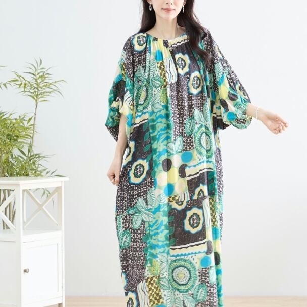 マキシワンピース カラフル エスニック N83-152 TRUBE L LL フリー 大人可愛い ミセス fmsd キレイメ 普段着 おしゃれ着 デイリーファッション 大人スタイル 婦人服 可愛い服 30代 40代 50代 60代 洋服 レディース