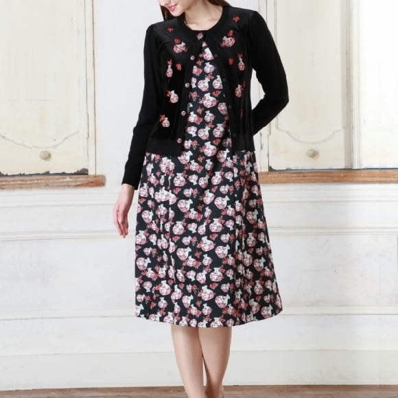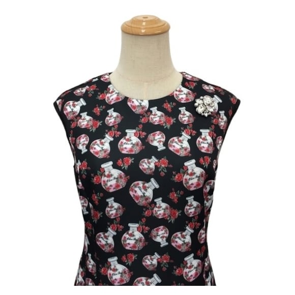 スーパービューティー ワンピース 香水瓶プリント ノースリーブ 2526001 ブラック 2025年秋冬 オーラボー 大人かわいい服 大人スタイル キレイメ Super Beauty レディース アパレル 女性 M L LL 30代 40代 50代 60代
