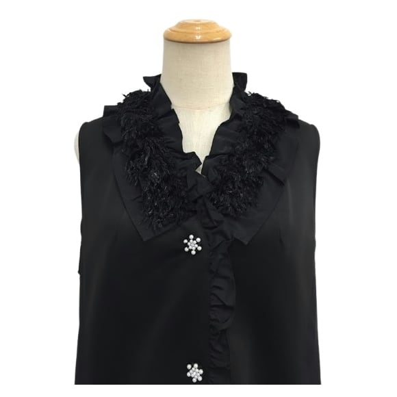 スーパービューティー ベスト フリル衿 ジレ 2527002 ブラック 2025年秋冬 オーラボー Super Beauty 大人かわいい服 大人スタイル キレイメ レディース アパレル 女性 M L LL 30代 40代 50代 60代