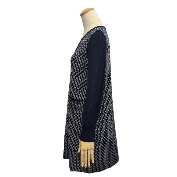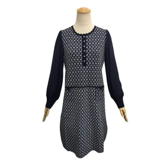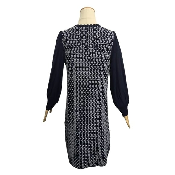 スーパービューティー ワンピース ジャガード編 袖パワーネット ニット 2521007 ネイビー 2025年秋冬 オーラボー Super Beauty 大人かわいい服 大人スタイル キレイメ レディース アパレル 女性 M L LL 30代 40代 50代 60代