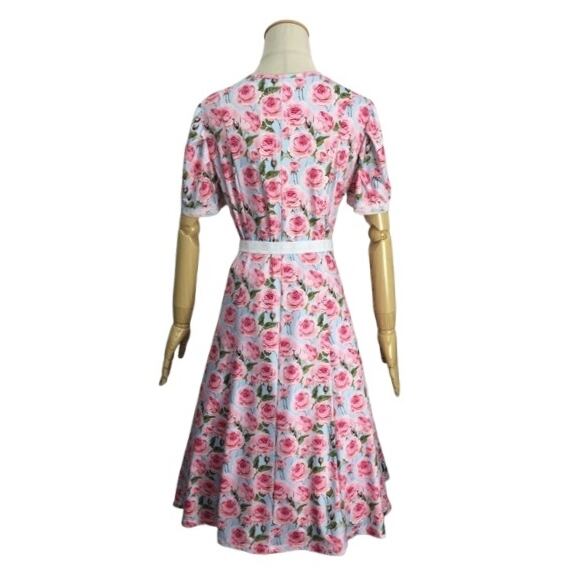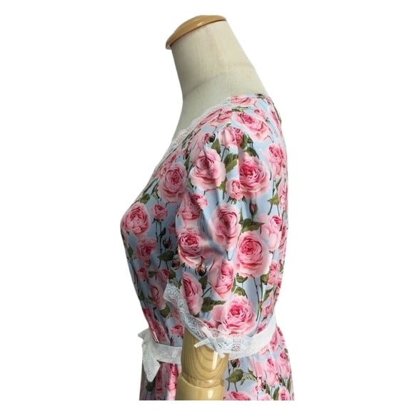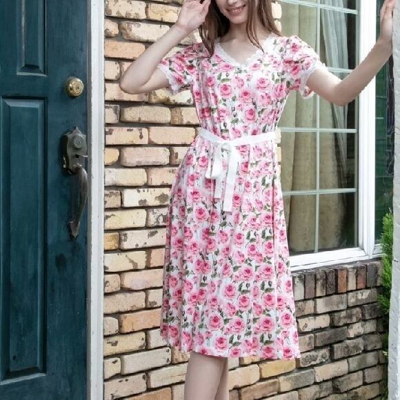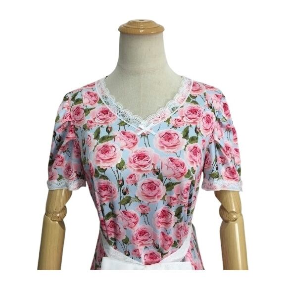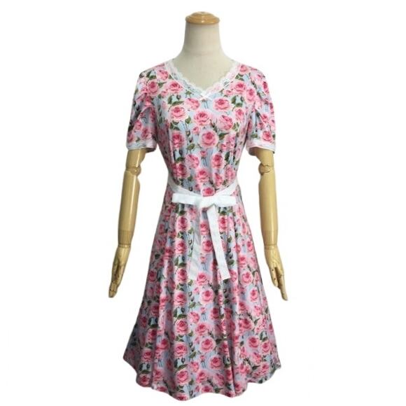 スーパービューティー 半袖ワンピース バラ柄 2516024 ブルー 2025年春夏 オーラボー 大人かわいい服 大人スタイル キレイメ Super Beauty レディース アパレル 女性 M L LL 30代 40代 50代 60代