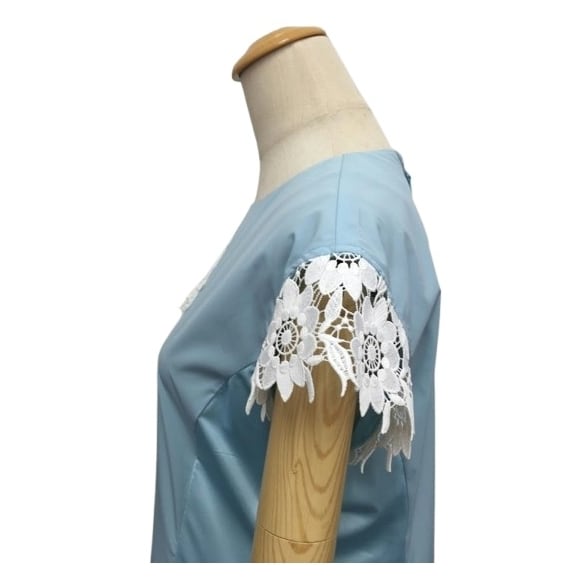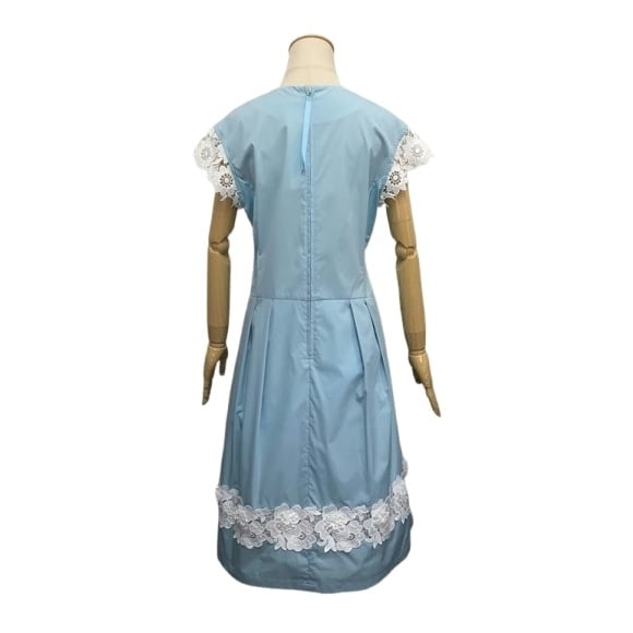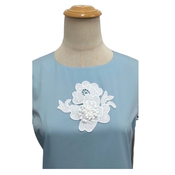 スーパービューティー ワンピース 花モチーフ付 袖レース使い タフタ 2516026 ブルー 2025年春夏 オーラボー Super Beauty 大人かわいい服 大人スタイル キレイメ レディース アパレル 女性 M L LL 30代 40代 50代 60代