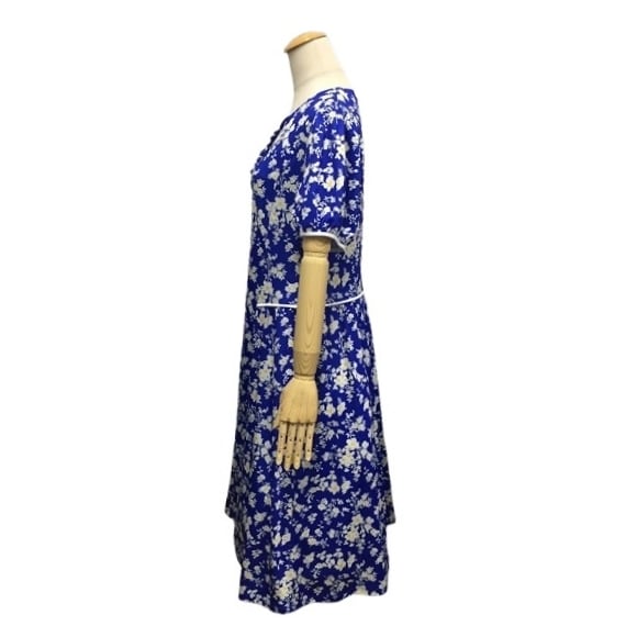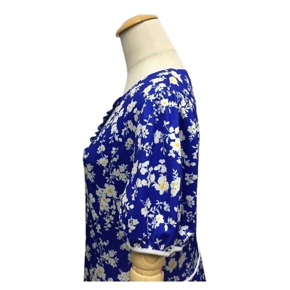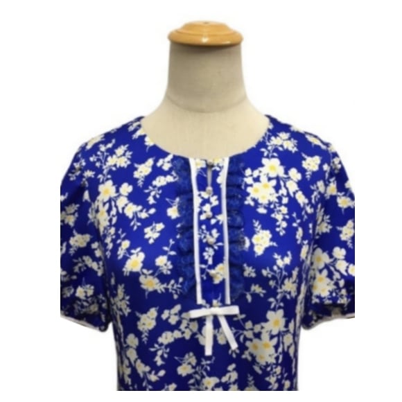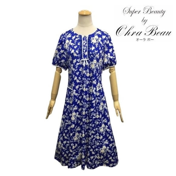 スーパービューティー ワンピース 胸元フリル 花柄 半袖ワンピ 2516028 ブルー 2025年春夏 オーラボー 大人かわいい服 大人スタイル キレイメ Super Beauty レディース アパレル 女性 M L LL 30代 40代 50代 60代