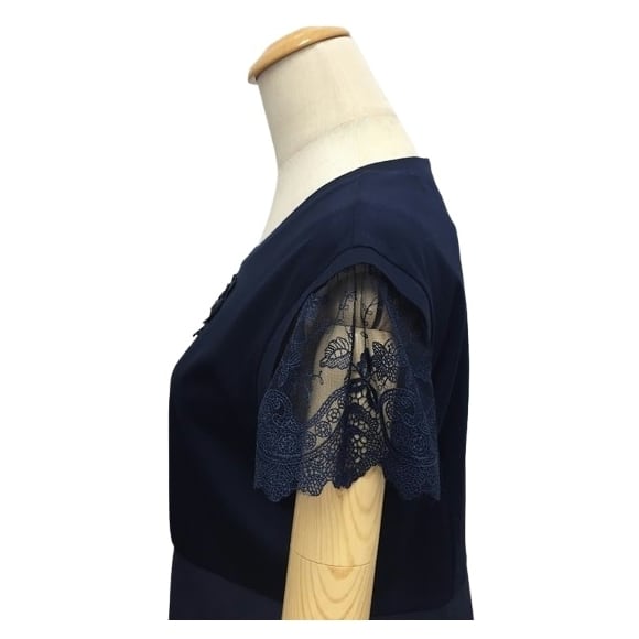 スーパービューティー ワンピース 袖レース ウェスト切替 ロング 2516048 ネイビー 2025年春夏 オーラボー Super Beauty 大人かわいい服 大人スタイル キレイメ レディース アパレル 女性 M L LL 30代 40代 50代 60代