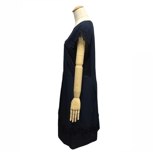 スーパービューティー ワンピース 花モチーフ付 袖レース使い タフタ 2516026 ネイビー 2025年春夏 オーラボー Super Beauty 大人かわいい服 大人スタイル キレイメ レディース アパレル 女性 M L LL 30代 40代 50代 60代