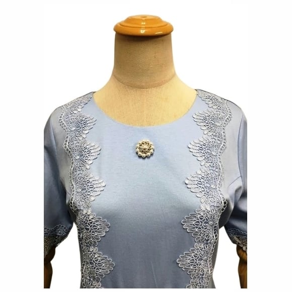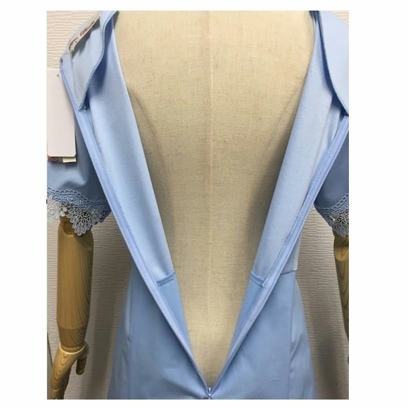 スーパービューティー ワンピース 襟元レース使い ウェスト切替 2516044 ブルー 2025年春夏 オーラボー Super Beauty 大人かわいい服 大人スタイル キレイメ レディース アパレル 女性 M L LL 30代 40代 50代 60代