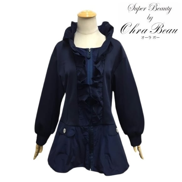スーパービューティー ジャケット フリル衿異素材 切替 2517001 ネイビー 2025年春夏 オーラボー Super Beauty 大人かわいい服 大人スタイル キレイメ レディース アパレル 女性 M L LL 30代 40代 50代 60代
