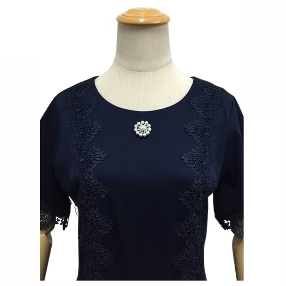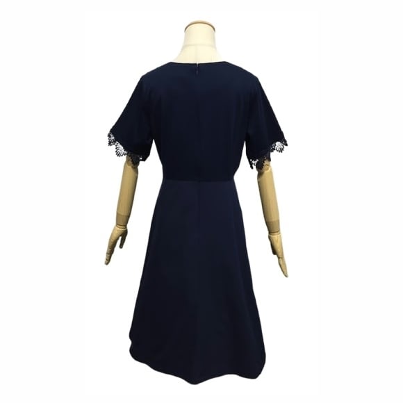 スーパービューティー ワンピース 襟元レース使い ウェスト切替 2516044 ネイビー 2025年春夏 オーラボー Super Beauty 大人かわいい服 大人スタイル キレイメ レディース アパレル 女性 M L LL 30代 40代 50代 60代