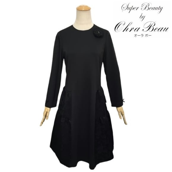 スーパービューティー ワンピース ジャガード織 ポンチ生地 2526011 ブラック 2025年秋冬 オーラボー Super Beauty 大人かわいい服 大人スタイル キレイメ レディース アパレル 女性 M L LL 30代 40代 50代 60代