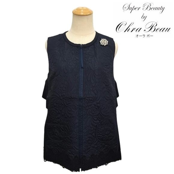 スーパービューティー ベスト ダンボールニット キルティング ジレ 2527005 ネイビー 2025年秋冬 オーラボー Super Beauty 大人かわいい服 大人スタイル キレイメ レディース アパレル 女性 M L LL 30代 40代 50代 60代
